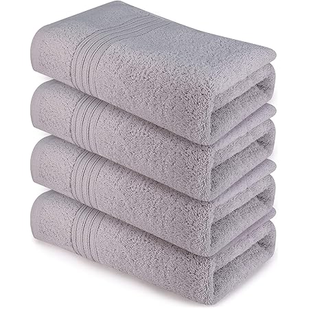 Amazon 100 綿 4枚 ホテルスタイル バスタオル 灰 セット タオル コットン 人気 安い ふわふわ 抜群の肌触り 吸水抜群 バスタオル 灰 バスタオル ホーム キッチン オンライン通販